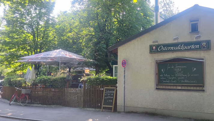 Der Schwabinger Osterwaldgarten verdankt seinen Namen der einstigen Lage an der Osterwaldstraße, benannt nach dem Architekten und Stadtrat Liebergesell. Nach dem Bau des mittleren Rings wurde der vordere Teil der Straße umbenannt. Das 1874 erbaute Wirtshaus war ursprünglich ein bescheidener Treffpunkt für Schwabinger Bauern, Knechte und Arbeiter der Lokomotivenfabrik Maffei, ausgestattet mit einer Kegelbahn. Auch Herzog Max in Bayern, Vater von Kaiserin Sisi, besuchte den Garten häufig und spielte dort Zither, weshalb er als „Zithermaxl“ bekannt war.