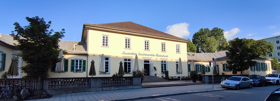 Der Schwabinger Osterwaldgarten liegt unmittelbar in der Nähe des Kleinhesseloher See im Westen des Englischen Gartens im Schwabing. Neben dem Restaurant wird auch ein schöner, schattiger Biergarten inklusive Bedienung am Tisch angeboten. Du bekommst hier die typischen bayrischen Spezialitäten wie eine Schweinshaxe mit Knödel. Das Restaurant ist täglich von 11 bis 23 Uhr geöffnet.